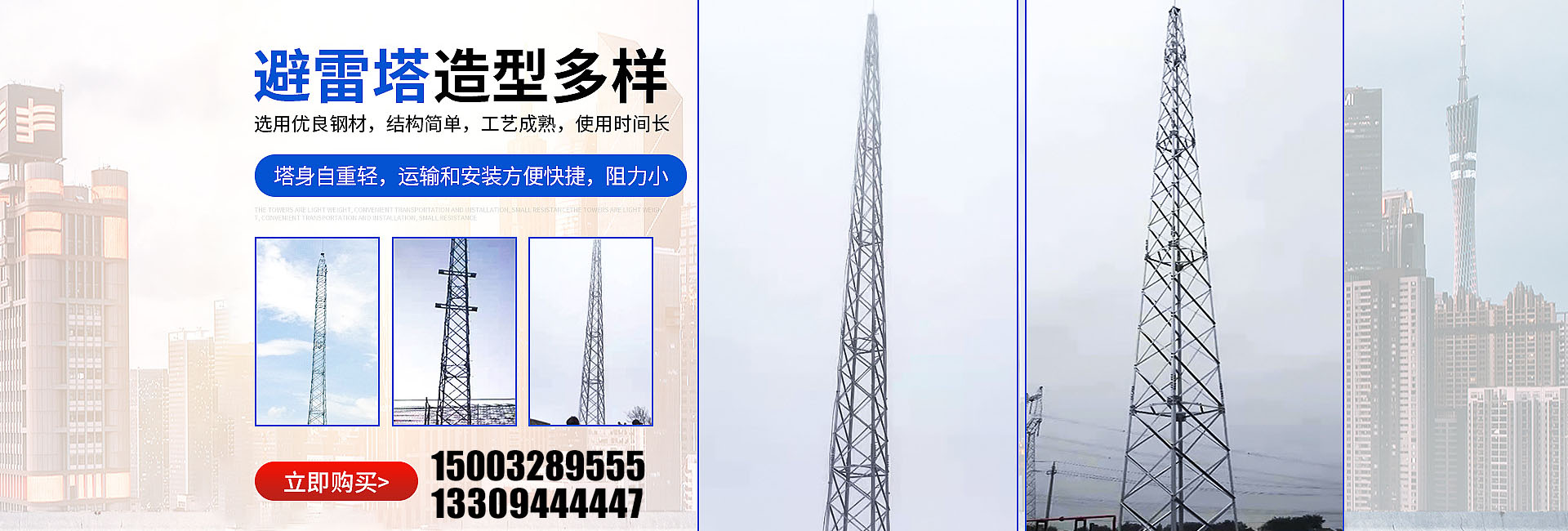 我公司主營:避雷塔、煙筒塔、瞭望塔、監控塔、訓練塔、電力架構、測風塔、工藝裝飾塔、氣象觀測塔、廣播電視塔、電力塔等, 產品銷售往全國各地,收到廣大用戶的好評。